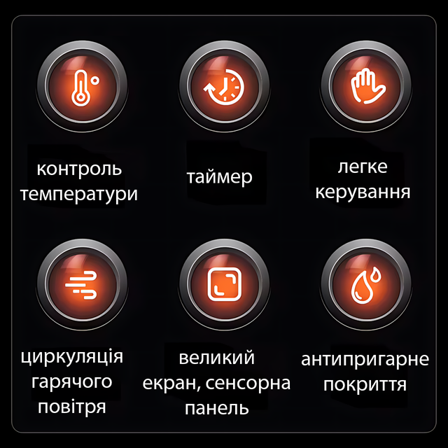 - ✅ Сенсорне керування — зручне настроювання температури та часу.