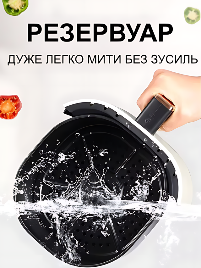 - ✅ Готує з мінімальною кількістю олії — до 80% менше жиру, порівнюючи з традиційними методами смаження.