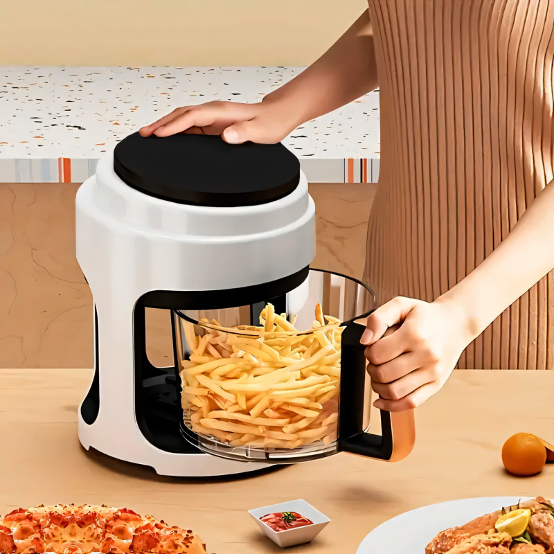 Електрична фритюрниця дає змогу насолодитися улюбленими смаженими стравами без додавання калорій із олії. Тут циркуляція повітря замінює нагрівання олії, роблячи смажене менш калорійним. Технологія нижнього вихрового теплового потоку забезпечує швидке нагрівання та рівномірний розподіл тепла. Процес смаження здійснюється гарячим повітряним потоком на 360 градусів, забезпечуючи швидкість і ефективність.