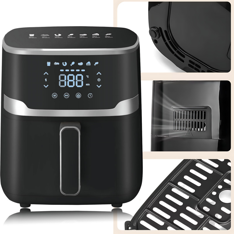 - ???? Містка чаша 5 літрів — готуйте на всю сім'ю або друзів! Одним махом — порція крилець або ціла гірка картоплі фрі.