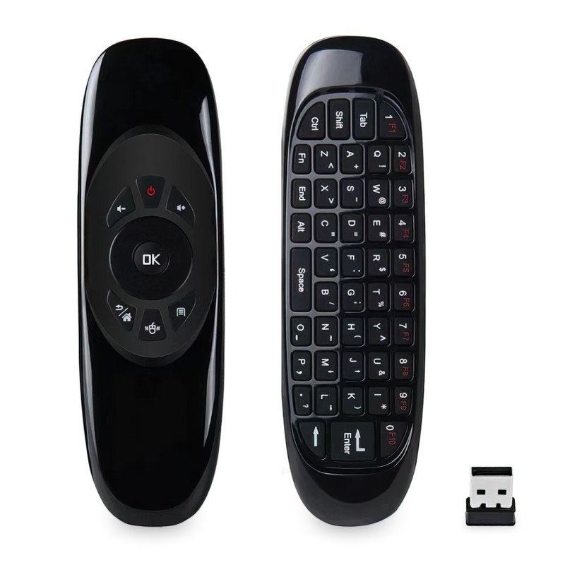 - Багатофункціональний 3в1 пристрій: пульт дистанційного керування, бездротова клавіатура та миша;
