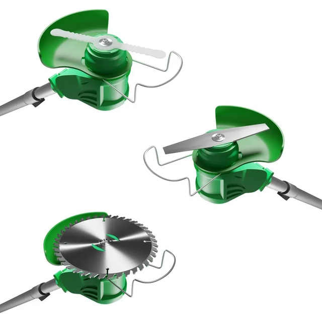 - Комплектація До комплекту входять додаткові аксесуари, як-от пиляльний диск і різні типи лез, що дає змогу розширити функціональність тримера та адаптувати його під конкретні завдання й умови використання.