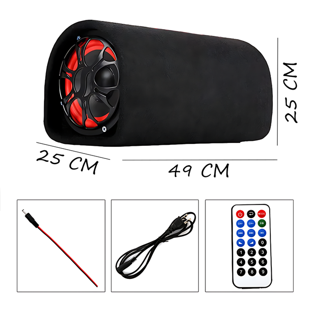 Якісний активний сабвуфер XPLOD BASS POWER 500W для автомобіля з Bluetooth, вбудованим підсилювачем, пультом дистанційного керування та фазоінвертором. Підтримує відтворення музики через вбудований MP3-плеєр з USB-флешки та карти пам'яті microSD. Також обладнаний FM-приймачем з антеною у формі скрученого дроту. Сабвуфер можна використовувати як в автомобілі, так і вдома за допомогою кабелю на 220 В.