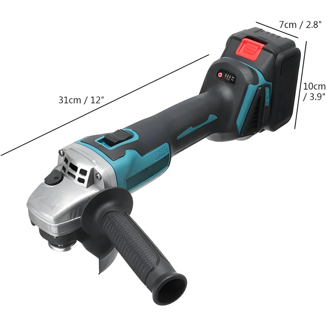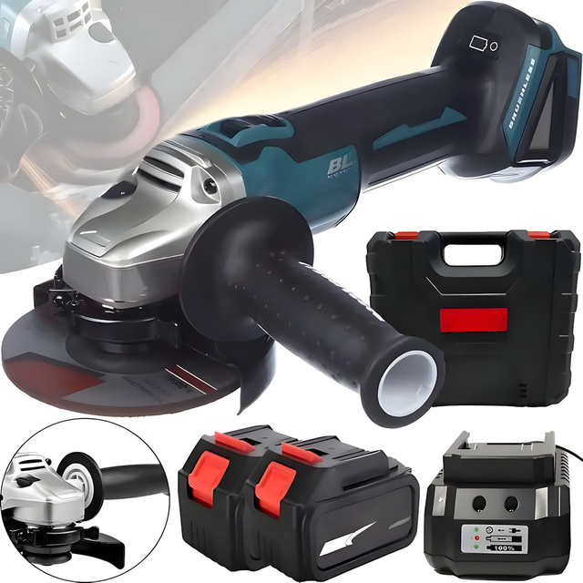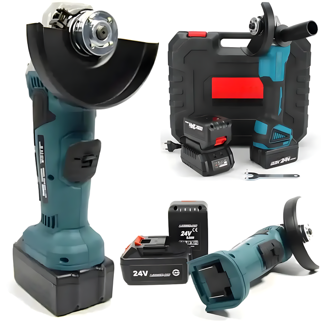 - Широкий функціонал і комплектація: Кутова шліфмашина постачається з двома літій-іонними акумуляторами, зарядним пристроєм, інструкцією, ключем затискання диска та пластиковим кейсом, що робить її готовою до використання та зручною в зберіганні та транспортуванні.