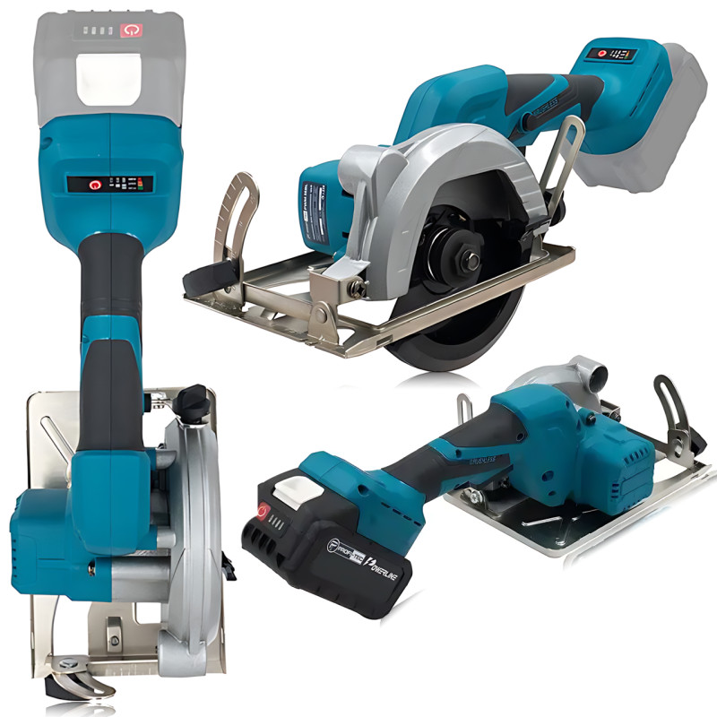 Акумуляторна циркулярна пила UNICECH 5" 48 В, безщіткова, 11000 об./хв, глибина пропилювання до 41 мм, кут нахилу 0-45°, 2 АКБ 5.0 А·год, зарядний пристрій, блакитна