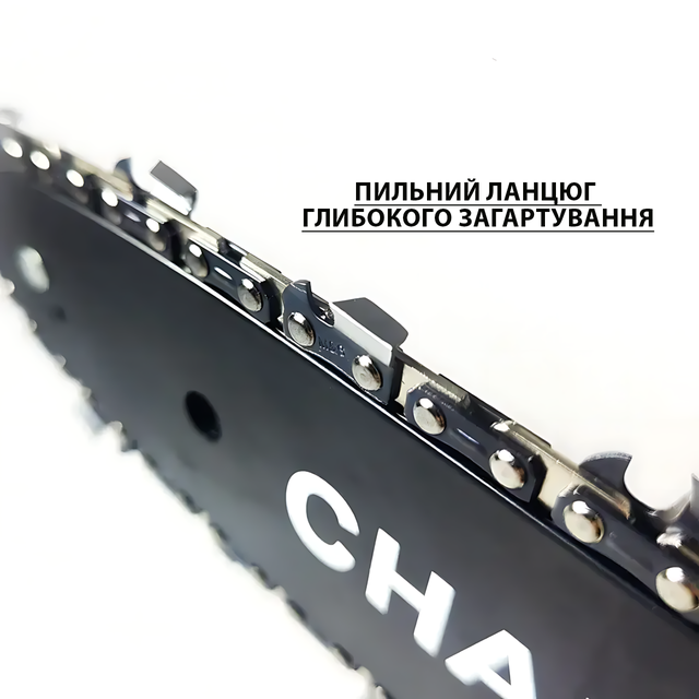 - ✅ Ланцюг із загартуванням — ріже чітко та швидко, ніби знає, куди їй треба.
