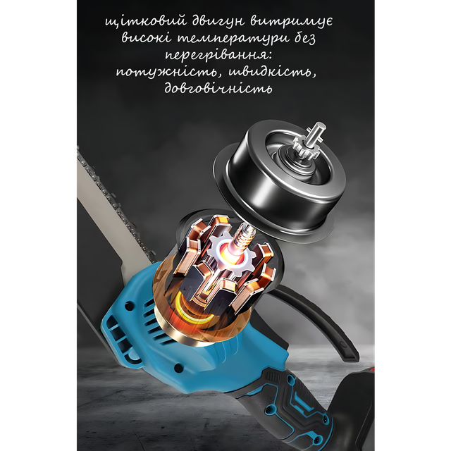 - ⚙️ Швидкість обертання ланцюга 7 м/с (4000 об/хв) — швидкий і чистий розпил.