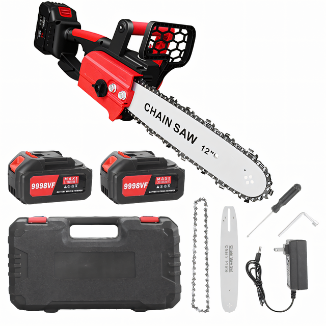 Акумуляторна ланцюгова пила M-9020 із шиною завдовжки 12 дюймів і двома акумуляторними батареями являє собою надійний, потужний і зручний інструмент для різання, який допоможе вам ефективно справлятися з різними завданнями у вашій роботі або вдома господарське.