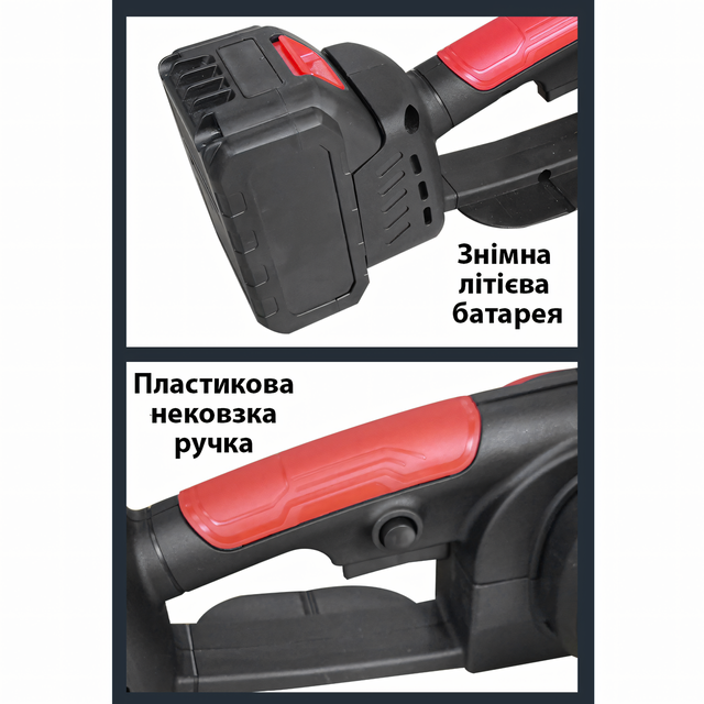 - Бездротова свобода: Пила працює на акумуляторній батареї, що забезпечує зручність і мобільність без потреби використання мережевого під'єднання. Це дає змогу працювати в віддалених місцях або там, де немає доступу до електрики;