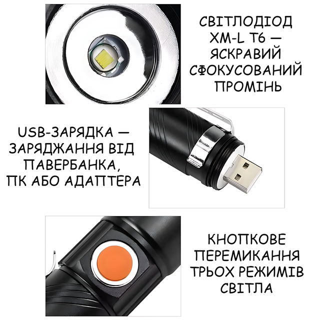 - 🔦 Світлодіод XM-L T6 — яскравий сфокусований промінь