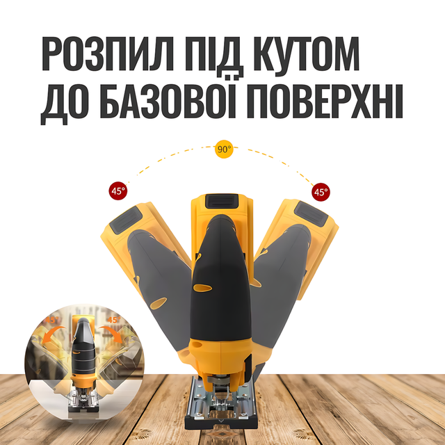 Потрібно розпиляти під кутом? Нахил до 45°? — без проблем. Просто повернув підошву — і вперед.