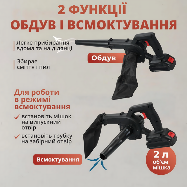- ???? 2 в 1 — повітродув і пилосос в одному пристрої