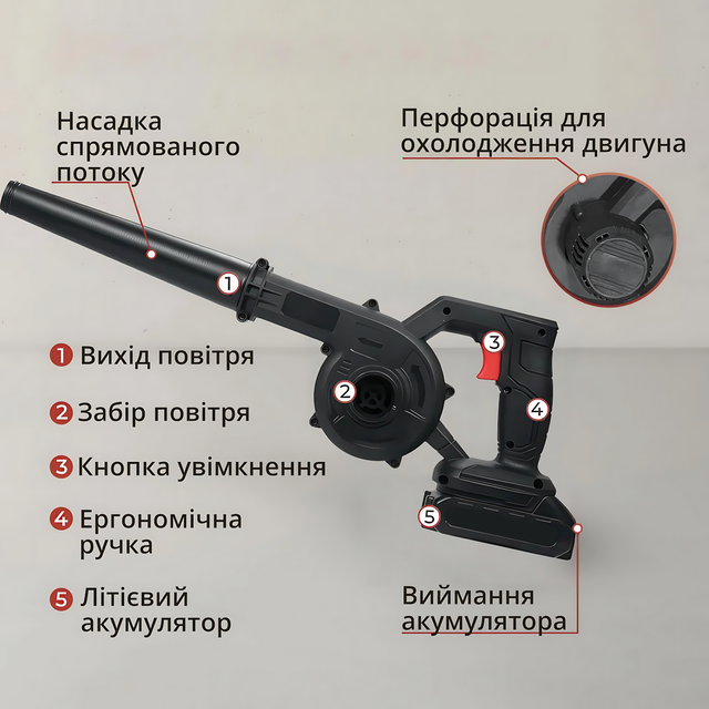 Акумуляторний повітродув 48 V з батареєю, універсальний повітродув-пилосос для прибирання