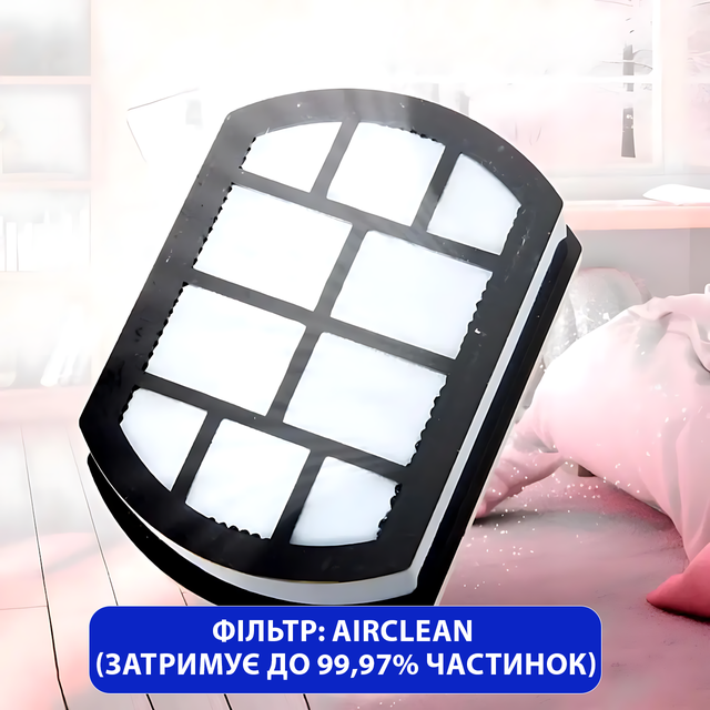 - Фільтр: AirClean (затримує до 99,97% частинок);