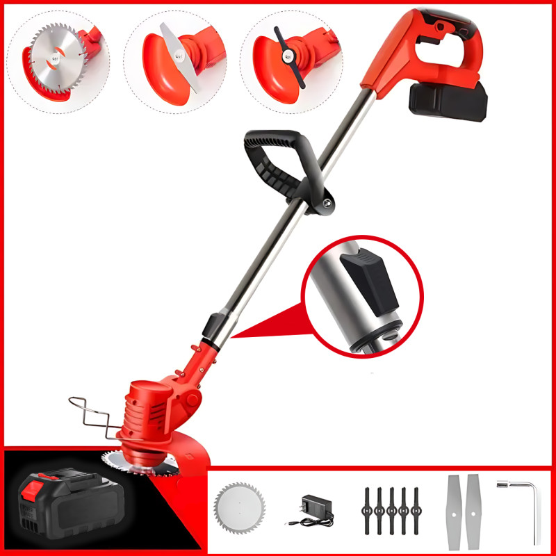 Акумуляторний тример для трави 800 Вт садова газонокосарка, 2 АКБ 48 В, 1.9 кг, телескопічна штанга, 3 насадки