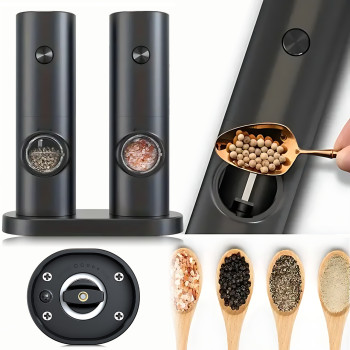 Електричний млин для солі та перцю 2 в 1 з підставкою та підставкою, регулювання помелу, на батарейк..