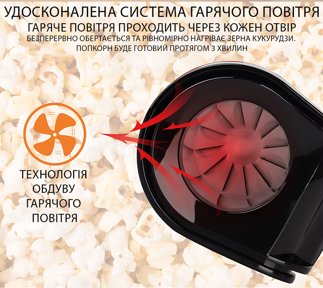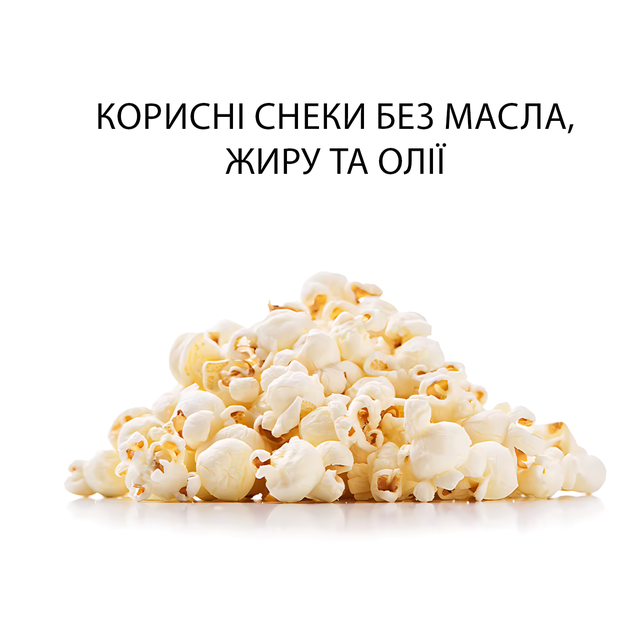 - Готовий об'єм попкорну: до 2 л за цикл;