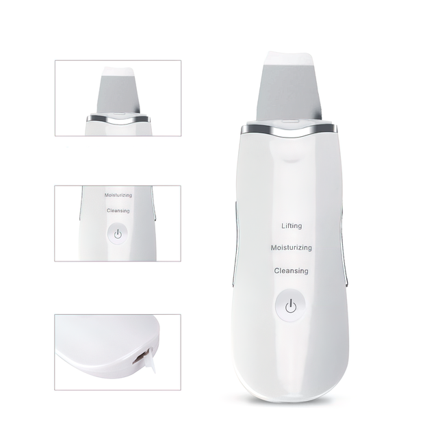 - Пілінг: за допомогою пристрою здійснюється ультразвукове чищення обличчя (пілінг), стимуляція й регенерація, підвищення еластичності шкіри. Під впливом ультразвукових хвиль відбувається делікатне очищення шкіри від забруднень, видаляються «чорні точки», вирівнюються колір шкіри, стають світлі пігментні плями;
