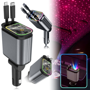 Автомобільний зарядний пристрій Ofottofo ZL-07, 66 Вт, 4-в-1, з висувним кабелем Type-C та iPhone, п..