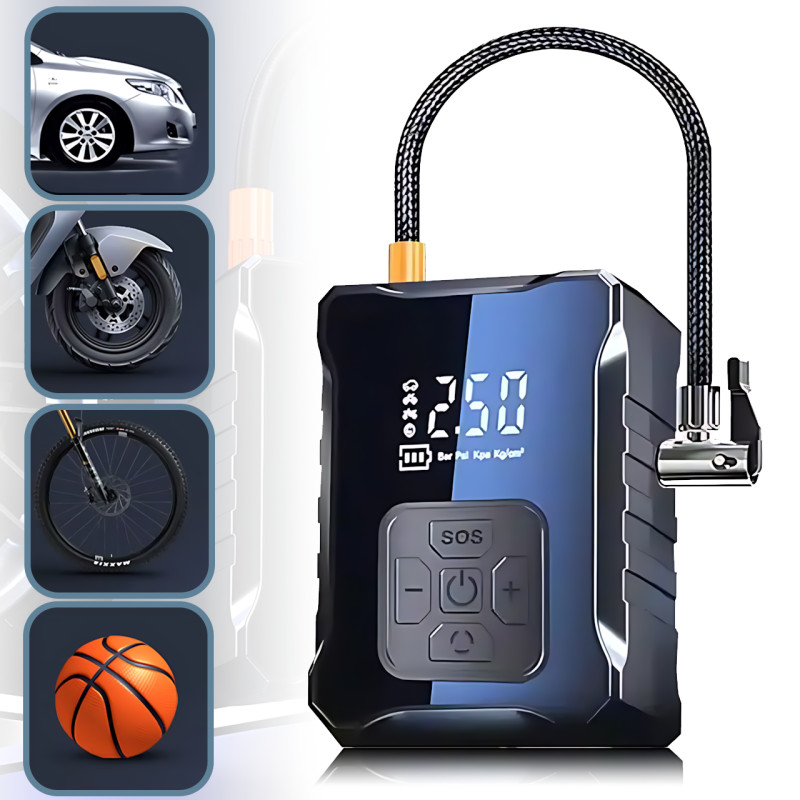 - ✅ Зручність у поїздках Ідеальний для далеких подорожей, заміських поїздок або щоденного підкачування. Працює від акумулятора — ти не прив'язаний до розетки або прикурювача.