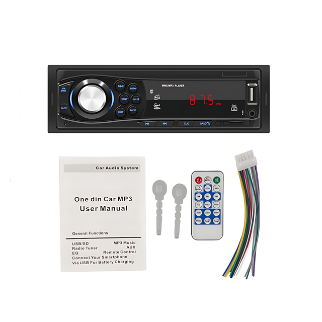 - Зручність керування: Магнітола обладнана поворотним регулятором гучності, що забезпечує інтуїтивно зрозуміле керування пристроєм. Додатково в комплекті йде пульт дистанційного керування, який дає змогу керувати магнітолою на відстані, забезпечуючи максимальний комфорт;