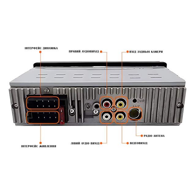 - Під'єднання зовнішніх пристроїв: Просто вставте флешку або карту пам'яті, і насолоджуйтеся музикою й відео! Є відеовихід для під'єднання додаткового монітора або навігатора — більше жодних нудних поїздок.