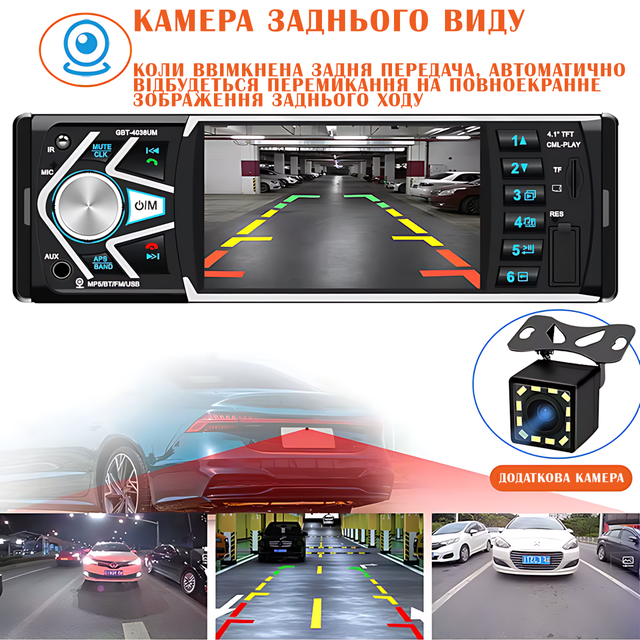 - Екран 4.1" TFT HD: Яскравий екран, на якому все видно навіть за сонячного світла! Керувати магнітолою та дивитися відео стало легко та зручно, навіть якщо навколо яскраво світить сонце.