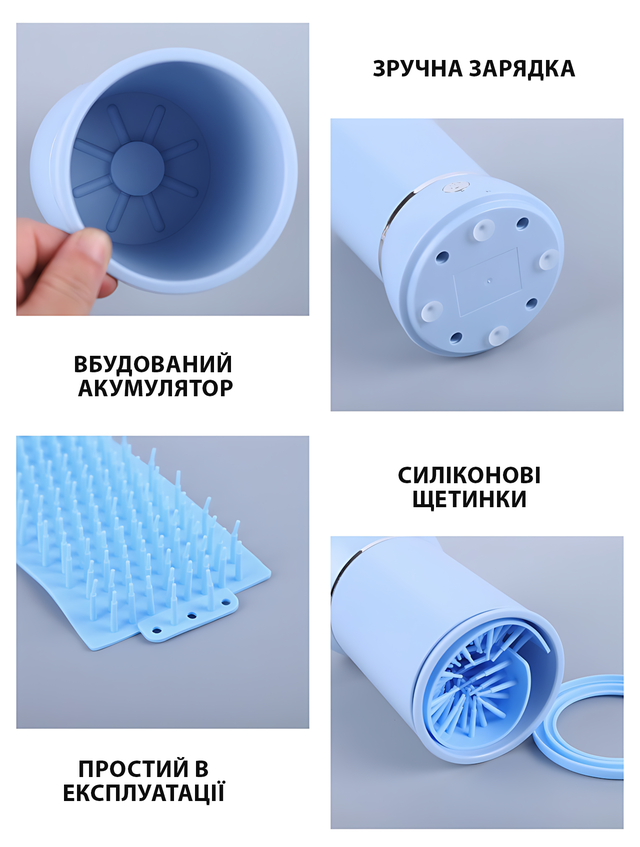 Автоматична лапомийка для собак і кішок PET FOOT WASH 827-6, 2000 мА·год, USB заряджання, щетинки із силікону