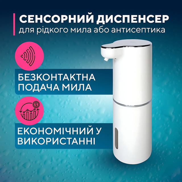 - Тип: Автоматичний дозатор рідкого мила (піна);