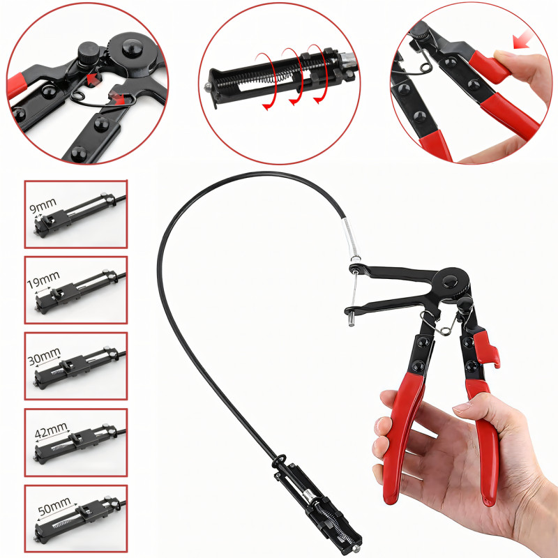 - Універсальність: Підходить для хомутів діаметром 1,8-5,4 см, забезпечує зручність заміни оливного та водяного шланга або труби;