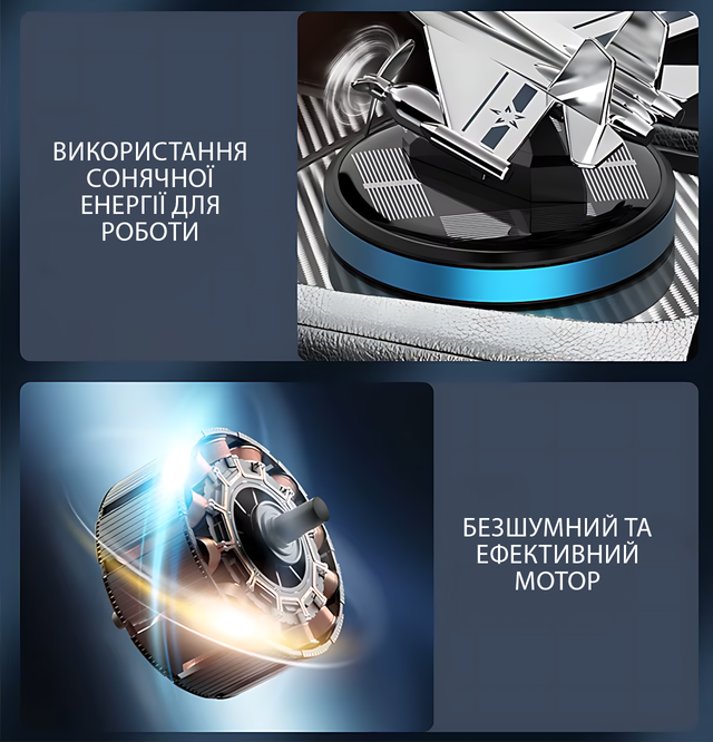 Щойно сонце торкається його мініпанелі — пропелер починає крутитися, розганяючи свіжість салоном. Як справжній пілот у гонитві за комфортом. Без батарейок. Без зайвого сміття — тільки світло, стиль і свіжість.