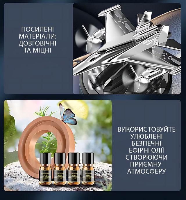 Автомобільний ароматизатор VERT-05 Літак F15 з обертовим пропелером, сонячною панеллю, освіжувач в авто