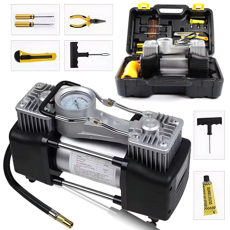 Компактний, потужний (160 Вт), з довгим кабелем 2,5 м. Під'єднується прямо в прикурювач. Можна не вилазити з машини під дощем. І так, він входить у зручний кейс. Ти просто кладеш його в багажник і забуваєш... поки він не знадобиться. А коли знадобиться — він виручить.