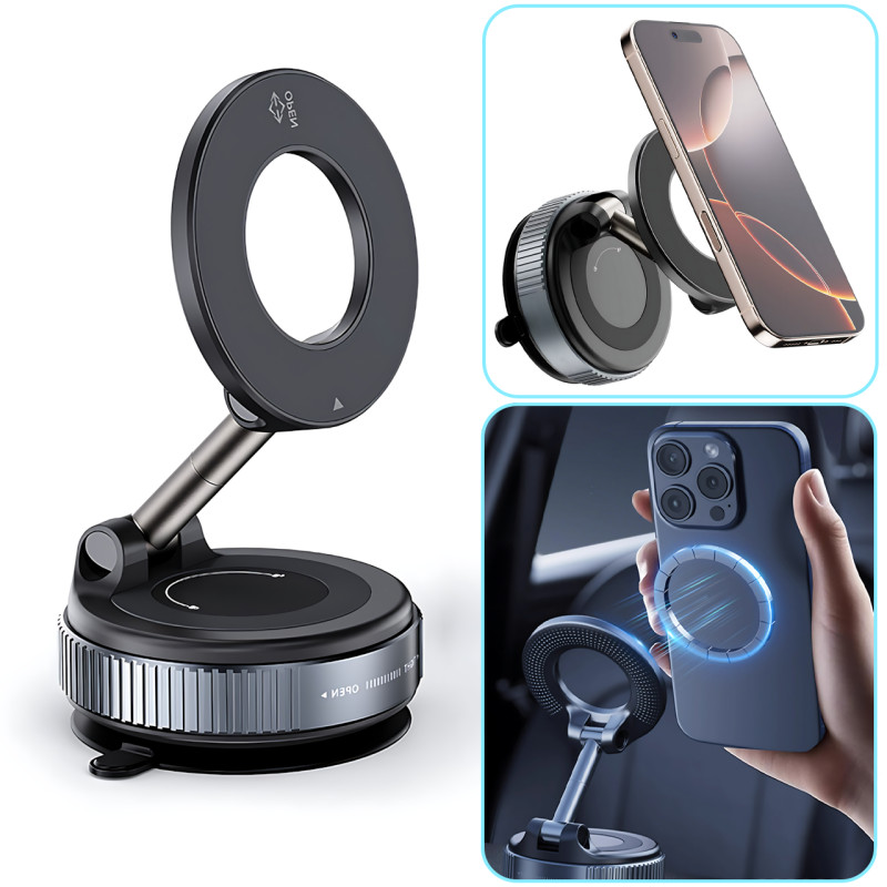 Автомобільний магнітний тримач JoyPro Magnetic Holder 360° — автотримач MagSafe з вакуумною присоскою, 16 магнітів N52, поворот 360°, для iPhone 12-16 і смартфонів