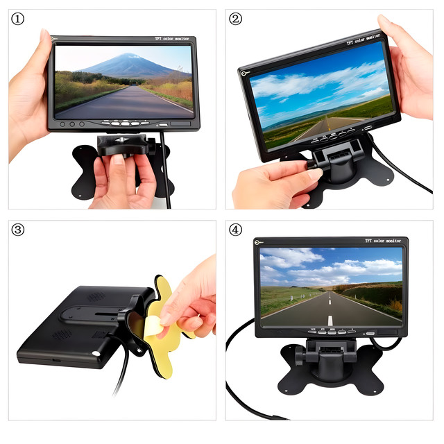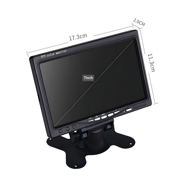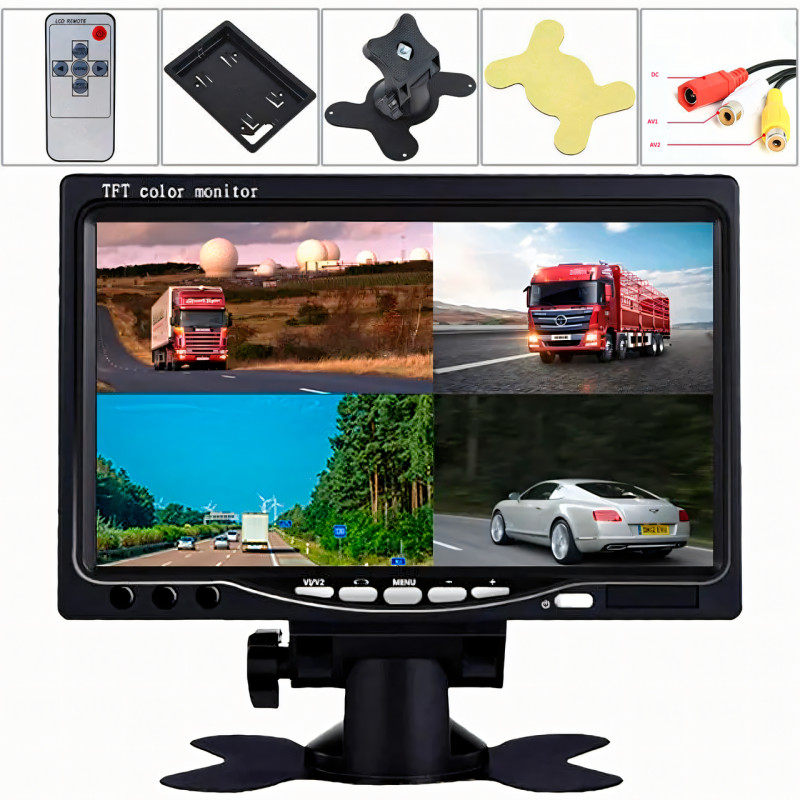 - БагатофункціональністьМонітор підтримує кілька відеостандартів, як-от PAL і NTSC, що забезпечує сумісність із різними джерелами відеосигналу. Крім того, наявність різноманітних відеовходів дає змогу використовувати його як екран для камери заднього огляду, телевізора або дисплея для медіаплеєра.