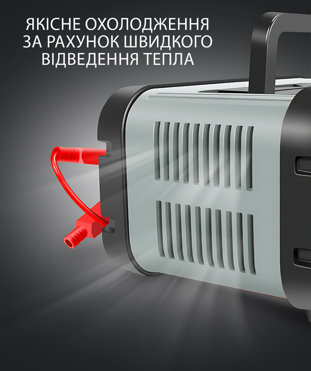 - Максимум захисту: від неправильної полярності (якщо переплутали клеми — нічого не згорить); від короткого замикання; від перегрівання (всередині є вентилятор); від перенапруги; і навіть якщо ви просто забули під'єднати батарею — він це врахує.