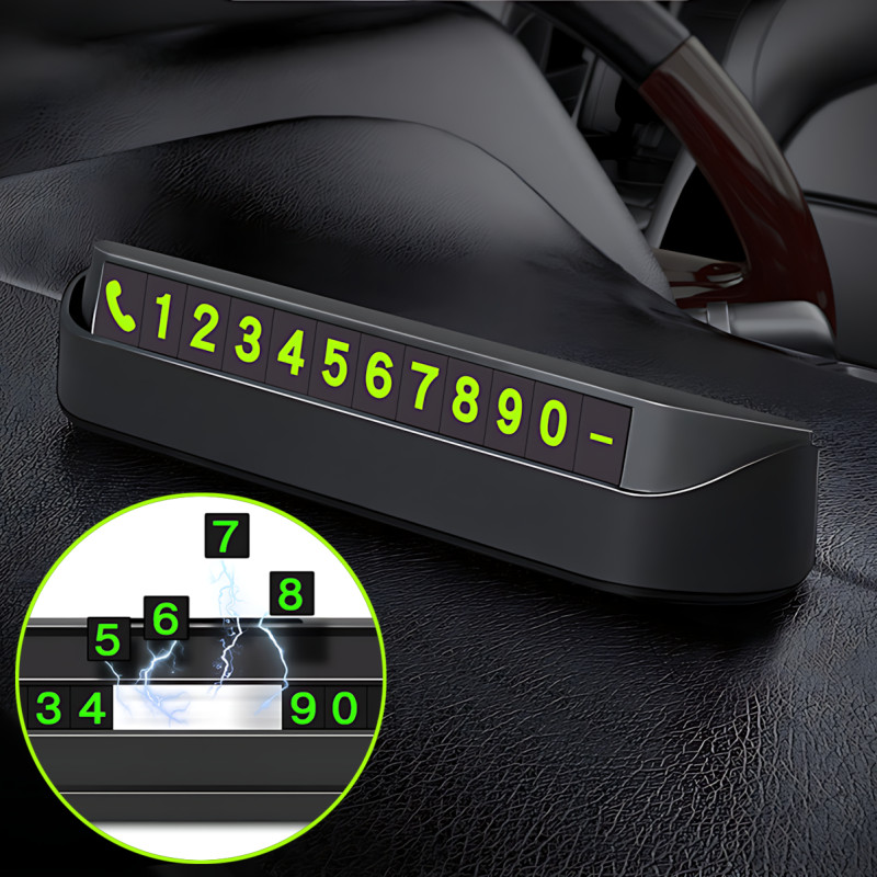 Замість папірців під склом, які вицвітають, злітають/виглядають сумнівно — акуратна паркувальна табличка з магнітними цифрами, де номер телефона легко зібрати за кілька хвилин.