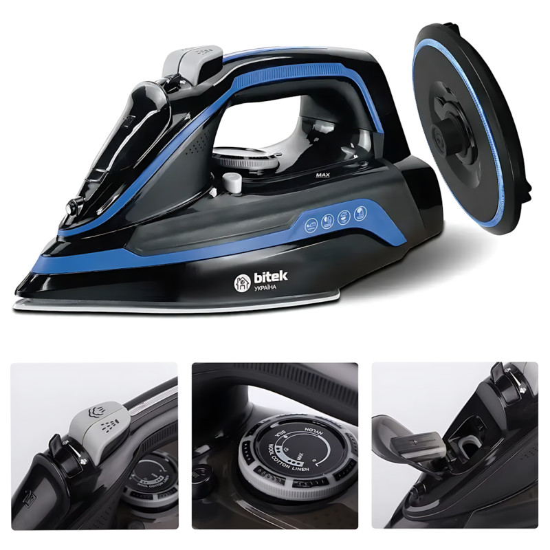 Бездротова парова праска BITEK BT-1297B, 3000 Вт, керамічна підошва, база 360°, 300 мл