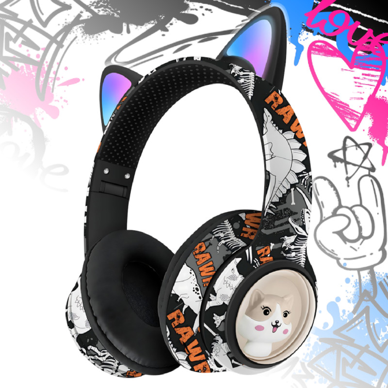 Бездротові накладні навушники GRAFFITI AKZ-37, з котячими вушками та Led-підсвіткою, мікрофоном