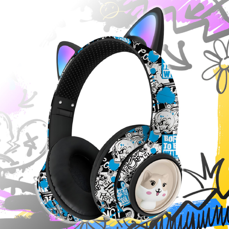 Бездротові накладні навушники GRAFFITI AKZ-37, з котячими вушками та Led-підсвіткою, мікрофоном