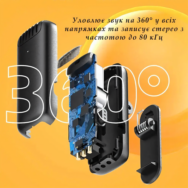 - Високочутливий мікрофон: Вбудований цифровий кремнієвий мікрофон вловлює звук на 360° і записує стерео з частотою до 80 кГц;