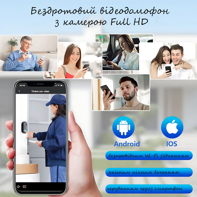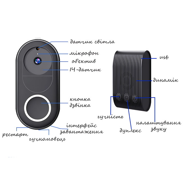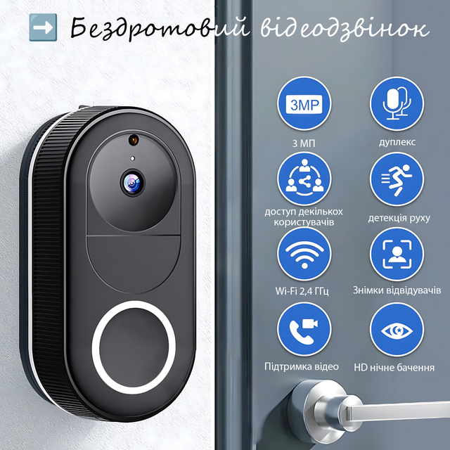 - Категорія: розумний дверний дзвінок, бездротовий відеодомофон;