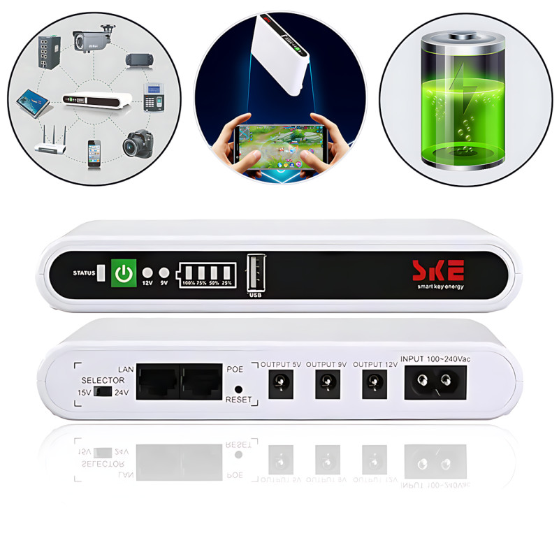 Джерело безперебійного живлення з літієвою батареєю ємністю 8800 мА·год ідеально підходить для підтримання роботи різних пристроїв як удома, так і на вулиці. Завдяки безлічі виходів із різними напруженнями та інтерфейсами, цей пристрій полегшує під'єднання, усуваючи потребу в додаткових адаптерах або блоках живлення. Доступні інтерфейси містять USB 5V/2A, DC 5V/2A, DC 9V/1A, DC 12V/1A, POE 15V/0.6A, і POE 24V/0.6A. Максимальна вихідна потужність становить 17 Вт, що дає змогу заряджати телефони, планшети, радіостанції, камери відеоспостереження та пристрої з Passive PoE (15 або 24 В).