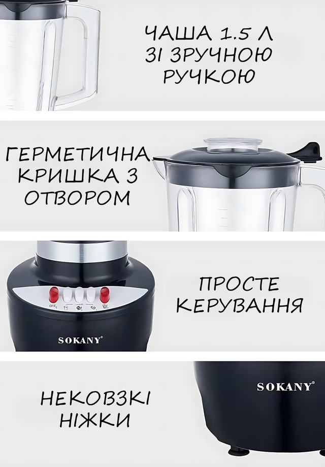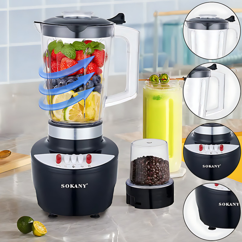 Блендер SOKANY SK-JB-182, багатофункціональний блендер 500 Вт, 1.5 л, 3 швидкості, з млином і мідним мотором