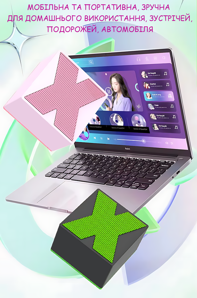 - ✔ Гучний стереозвук — 2 динаміки та яскраві баси надають музиці об'єм