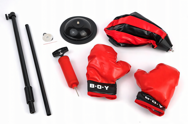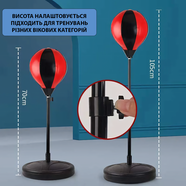 - Розміри та настроювання: Груша має зручний діаметр і легко надувається за допомогою насоса, а максимальна висота стійки забезпечує комфортне тренування для дітей різного віку;