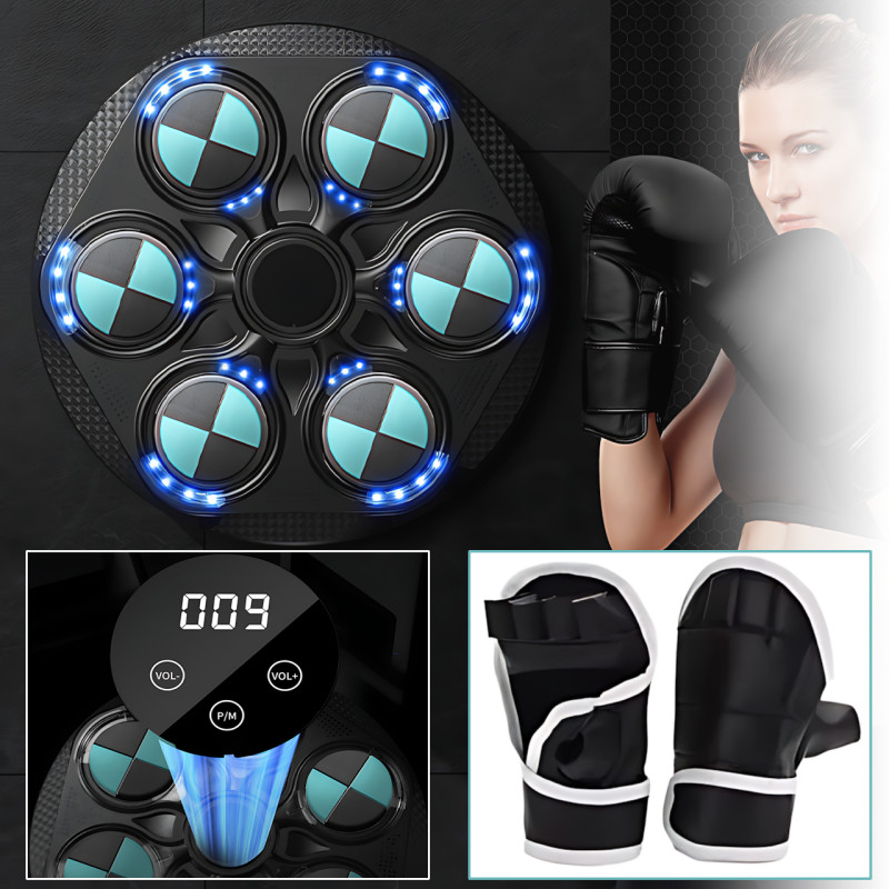 Боксерський тренажер LY-737 з музикою, RGB-підсвіткою і рукавичками, настінний, 41.5×41.5 см