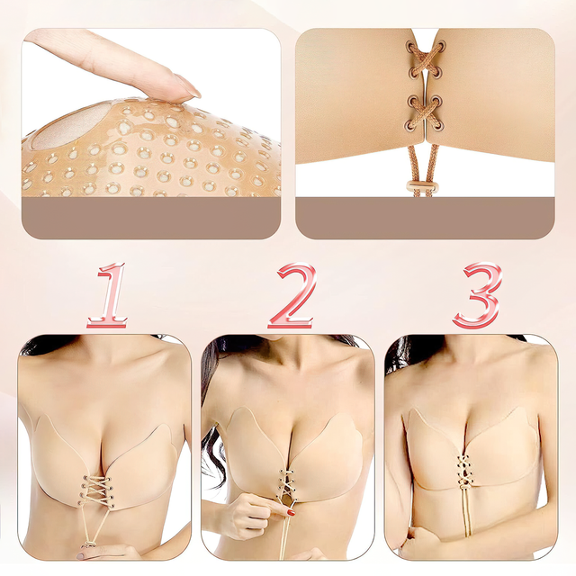 - Надійне кріплення: унікальна клейка основа забезпечує надійне зчеплення зі шкірою, не викликаючи подразнення, і забезпечує довготривале використання бюстгальтера.