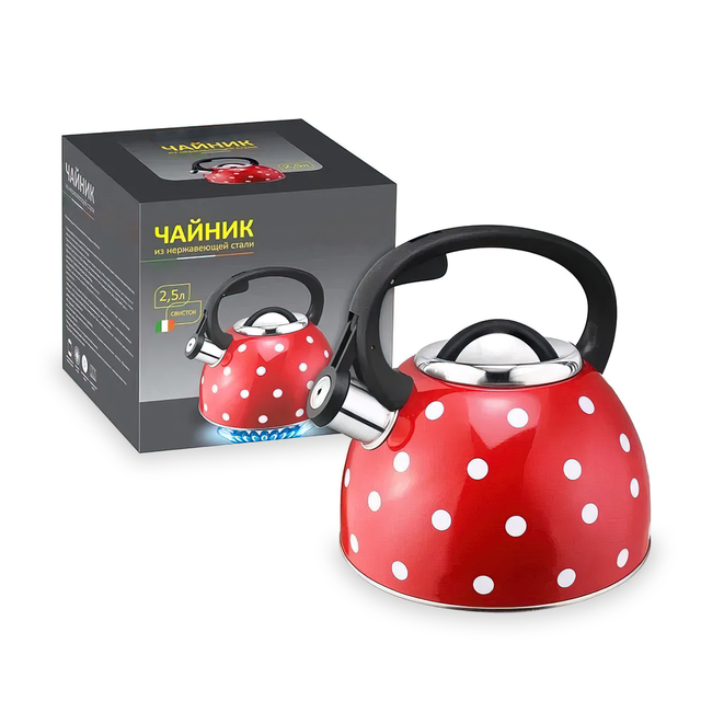 - Універсальність і простота: сумісний із різними типами плит, чайник також має практичну конструкцію ручки, яка полегшує керування свистком і забезпечує зручність під час використання.