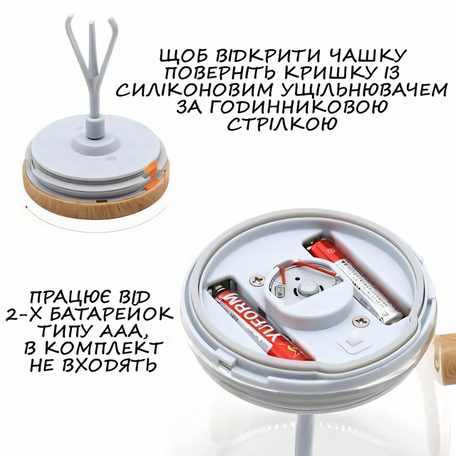 - Живлення: 2 батарейки ААА (до комплекту не входять);